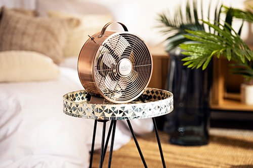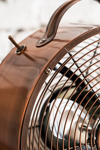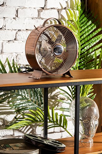 Loft tipo ventiliatorius – tai įranga, kurią pirmiausia rekomenduojama naudoti didelėse erdvėse, bet ne tik. Dėl originalaus dizaino ir vario spalvos apdailos jis puikiai atrodo atviroje erdvėje ir pramoniniu bei moderniu stiliumi įrengtose patalpose. Mažesnio dydžio, didelės galios ventiliatorius padeda greičiau atvėsinti orą ir maloniai jį gaivinti ilgomis ir karštomis dienomis.