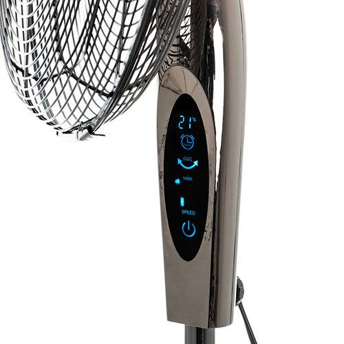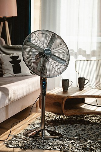 Ieškant būdo, kaip sumažinti temperatūrą namuose, reikia atsižvelgti į keletą veiksnių. Pirmiausia svarbu patalpos, kurią norime vėsinti, dydis. Didelėse svetainėse ir miegamuosiuose staliniai ventiliatoriai gali netikti, oro kondicionieriaus įrengimas yra gana brangi investicija ir ne visada gausime tam pritarimą, todėl stovinio ventiliatoriaus įsigijimas yra verta alternatyva. Gerai, jei prietaisas dera prie interjero dizaino. Mūsų siūlomas modelis atrodo labai elegantiškai, tamsesnė spalva ir chromuotas paviršius jį išskiria iš plastikinių analogų, todėl jis papildys bet kokio stiliaus interjerą. Gaminys taip pat turėtų būti patvarus. Metalinis sraigtas tarnaus ilgai, o dėl 45 cm skersmens ir 53 m³/min oro srauto jis atvėsins orą vos per kelias akimirkas.