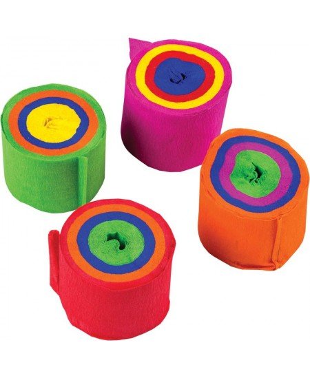 Krepinis popierius dekoravimui. Išmatavimai 3,5 cm x 10 m. Pakuotėje 4 vnt., įvairių spalvų.