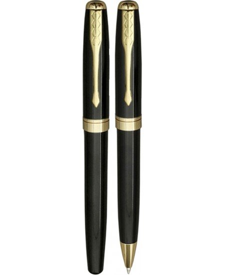 Rinkinys JAGUAR BLACK/GOLD, tušinukas + rašiklis, prabangioje dovanų dėžutėje. Tušinuko brėžio storis 0,7 mm. Juodos spalvos šerdelė. Rinkinys dekoruotas aukso spalvos detalėmis.
